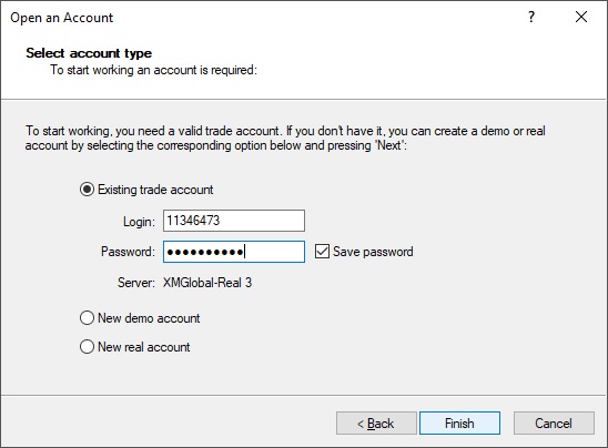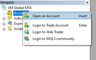 - Klik kanan pada menu Accounts dan pilih menu Open an Account