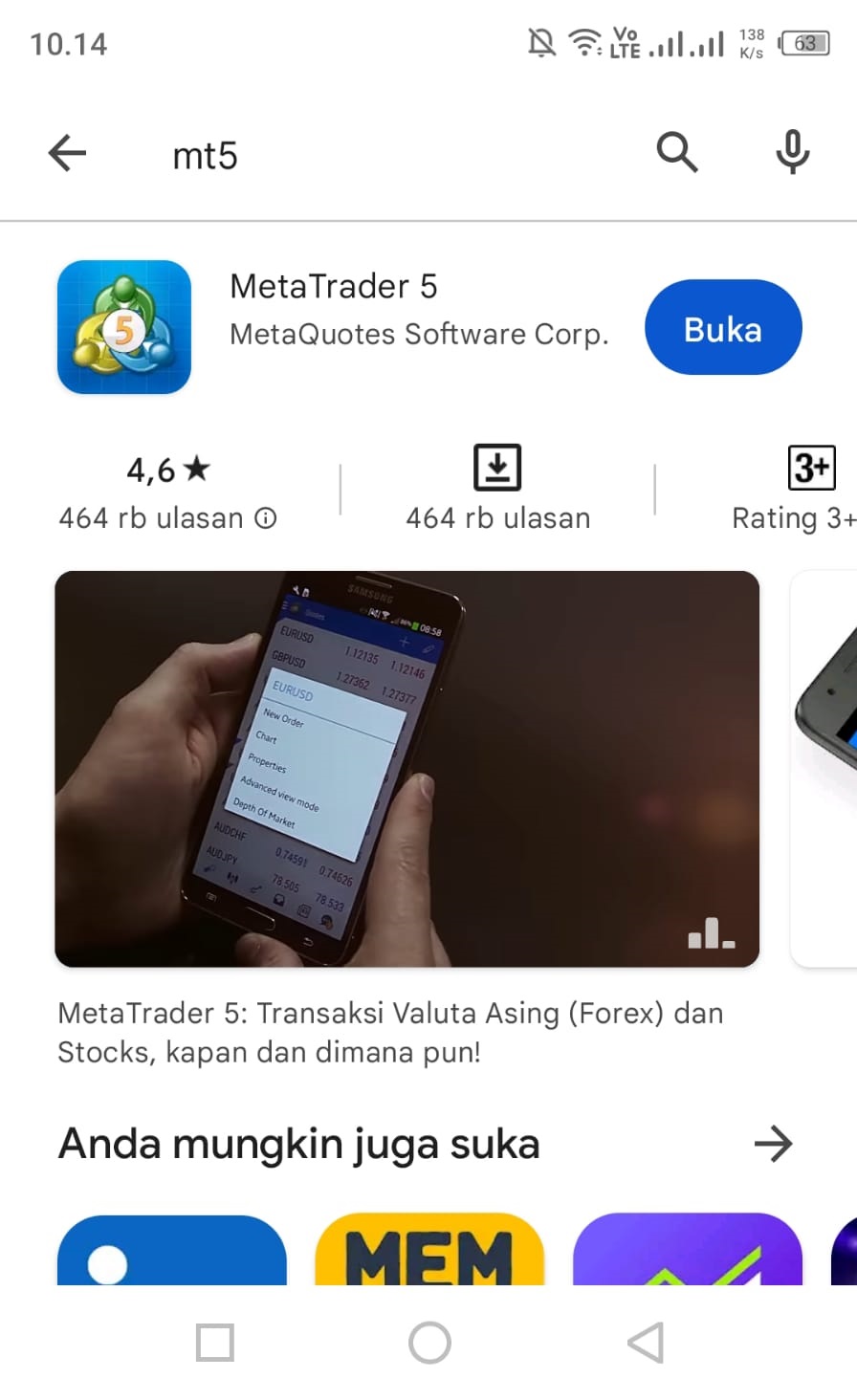 - Bisa download melalui aplikasi Play Store, pada pencarian ketik mt5