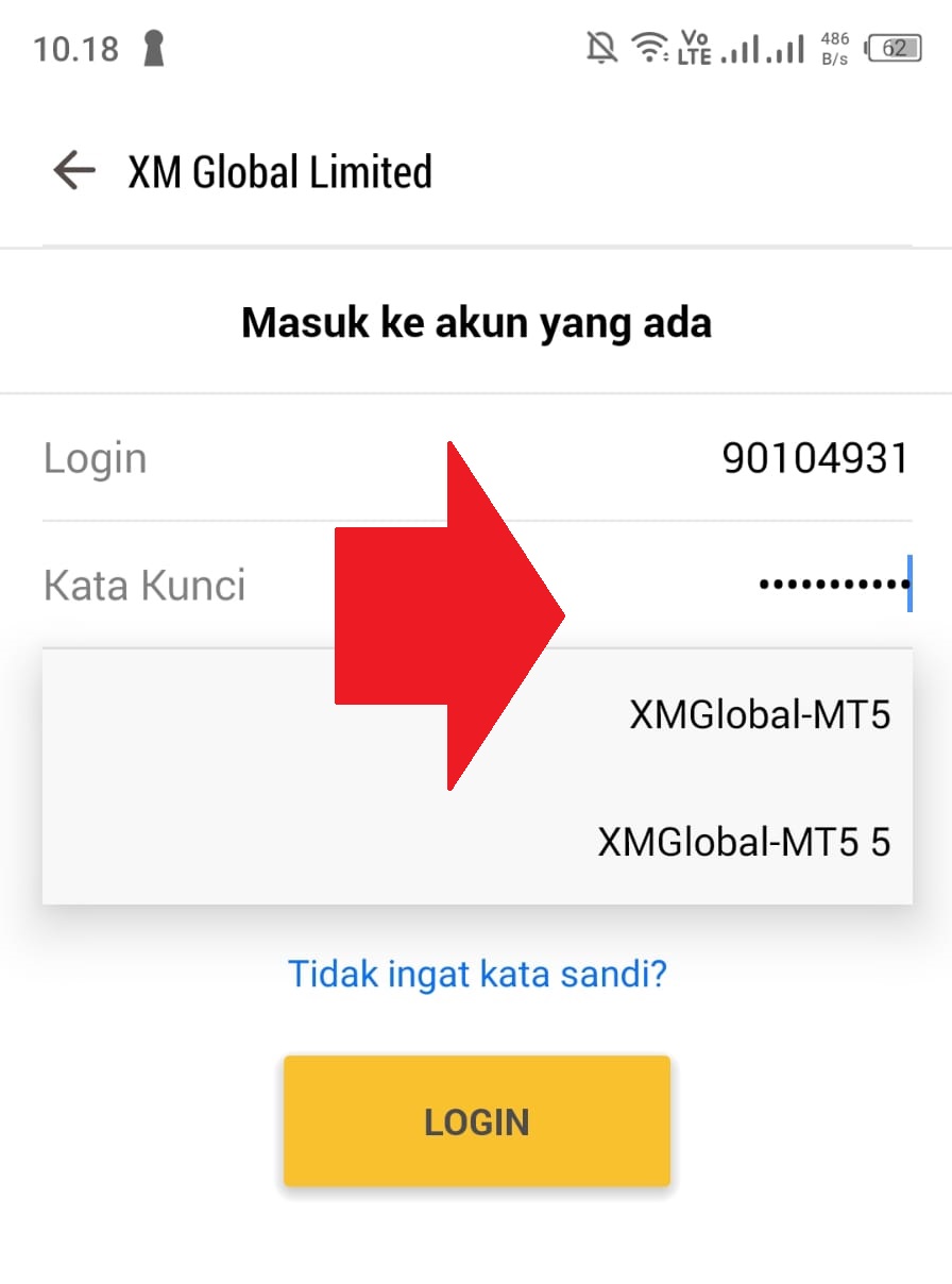 - Pilih server XMGlobal sesuai informasi server akun MT5 lalu klik tombol LOGIN